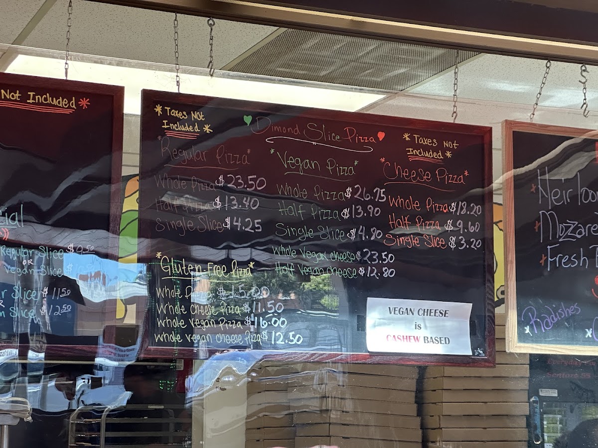 At Dimond Slice Pizza, the star of the show is undoubtedly their pizza, crafted with love and dedication. With an impressive menu that caters to various dietary needs, you can indulge in a variety of pizzas that promise to tantalize your taste buds. If you're looking for something that stands out, try the unique Vegan Cheese Pizza, available for just $23.50, or opt for the Pizza Of The Day, which showcases seasonal ingredients and creativity for $23.50. For those who crave a gluten-free option, the 10" Gluten-Free Vegan Pizza Of The Day at $16.00 is a perfect choice that ensures neither flavor nor nutrition is sacrificed.